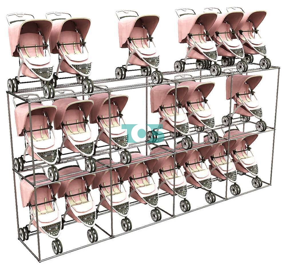 Отличия модели стеллажа h-2400 для детских колясок отдельностоящого №4 (длина 5,1 метра):