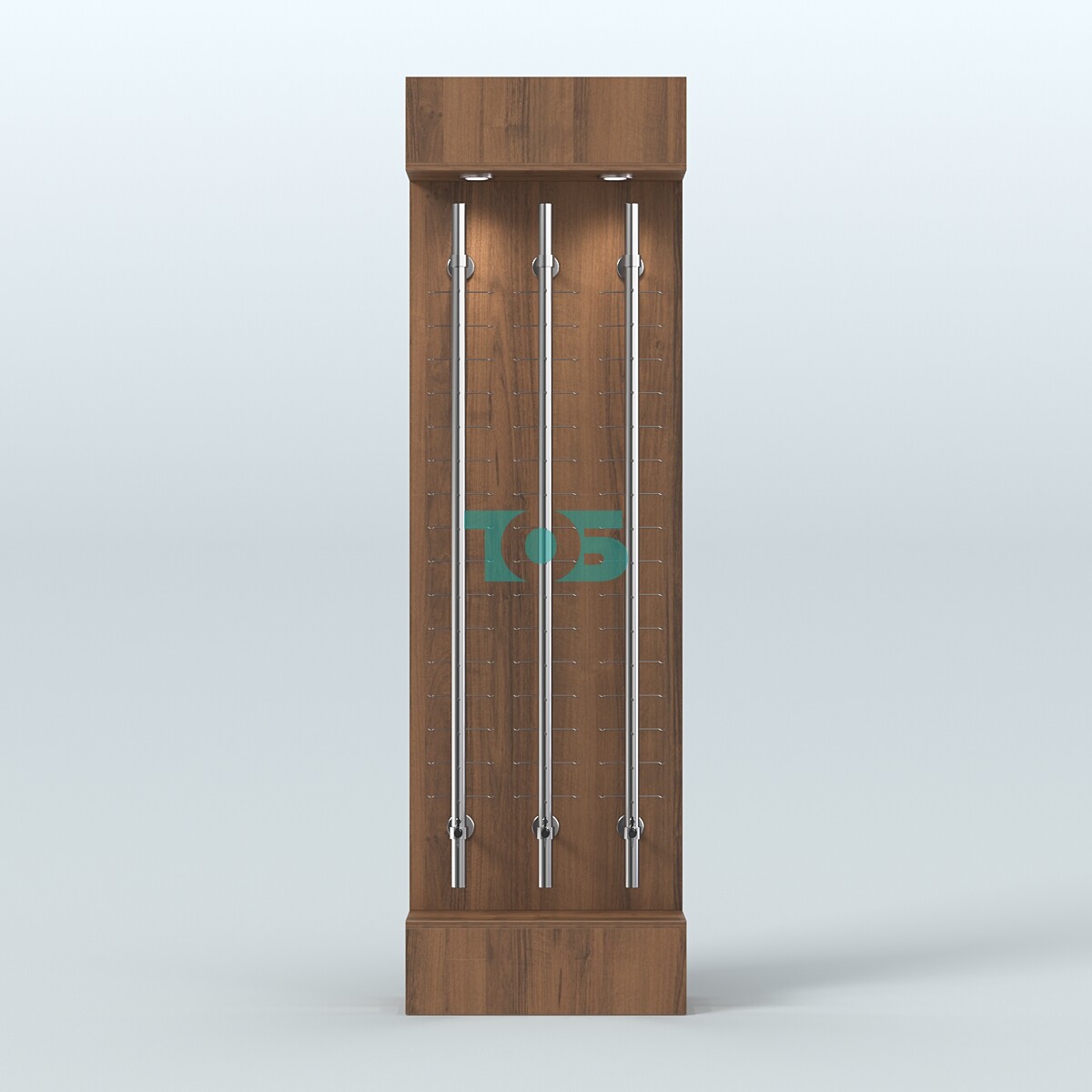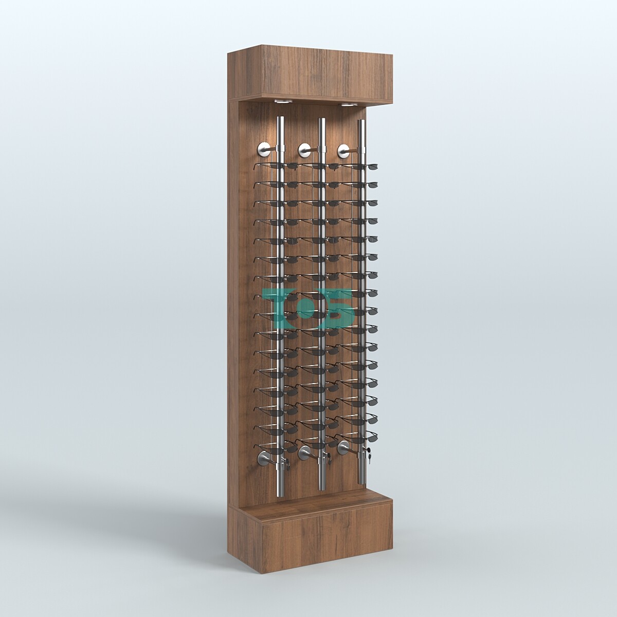 Система хранения: каждый стержень под очки запирается на индивидуальный ключ, что обеспечивает безопасность хранения и предотвращает потерю или кражу товара.