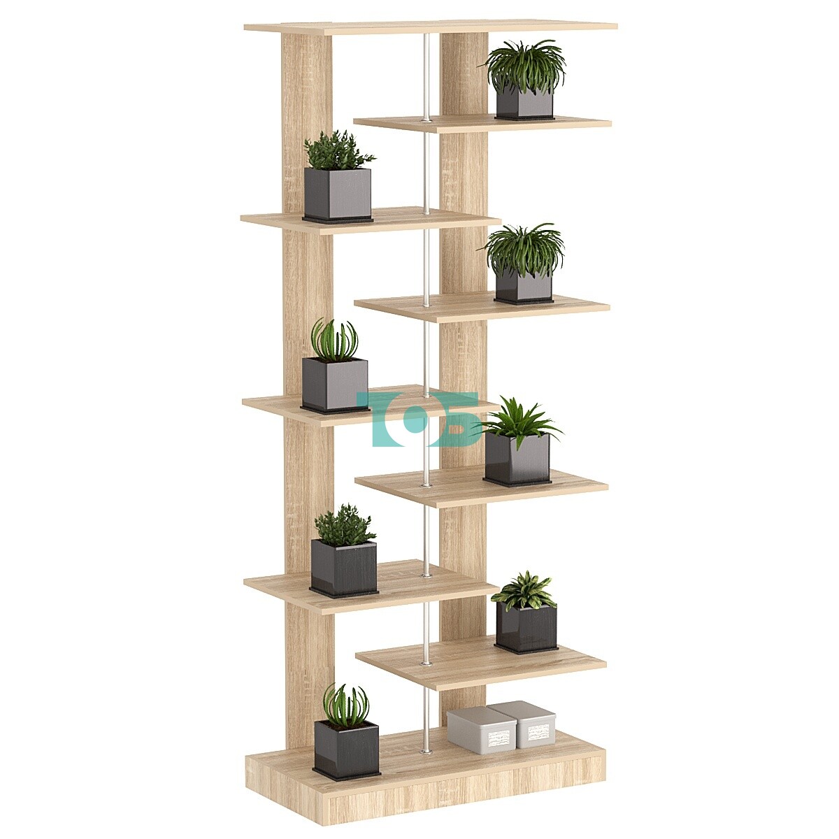 Задняя стенка: в данной модели стеллажа задняя стенка отсутствует. Это обеспечивает доступ к предметам с задней стороны и позволяет интегрировать стеллаж в существующую мебельную композицию.