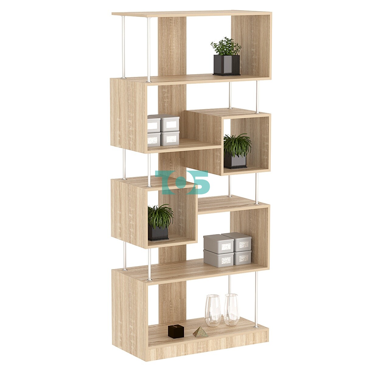 Задняя стенка: в данной модели стеллажа задняя стенка отсутствует. Это обеспечивает доступ к предметам с задней стороны и позволяет интегрировать стеллаж в существующую мебельную композицию.