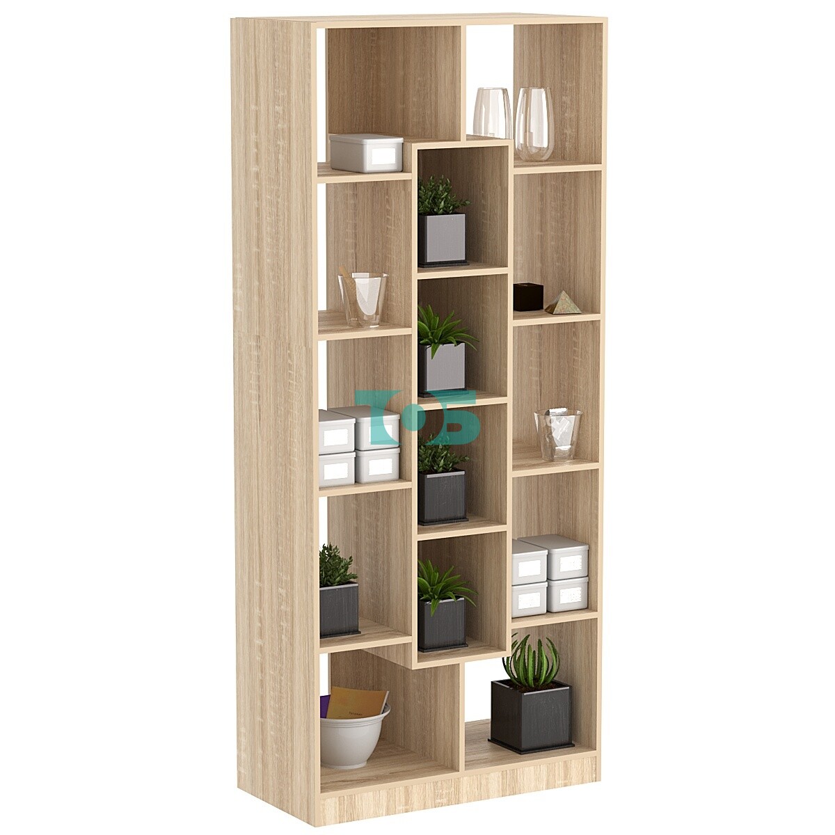 Задняя стенка: в данной модели стеллажа задняя стенка отсутствует. Это обеспечивает доступ к предметам с задней стороны и позволяет интегрировать стеллаж в существующую мебельную композицию.