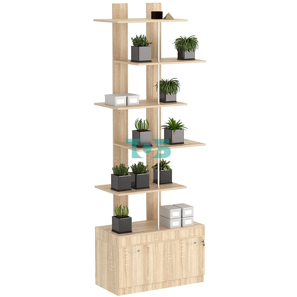 Задняя стенка: в данной модели стеллажа задняя стенка отсутствует. Это обеспечивает доступ к предметам с задней стороны и позволяет интегрировать стеллаж в существующую мебельную композицию.