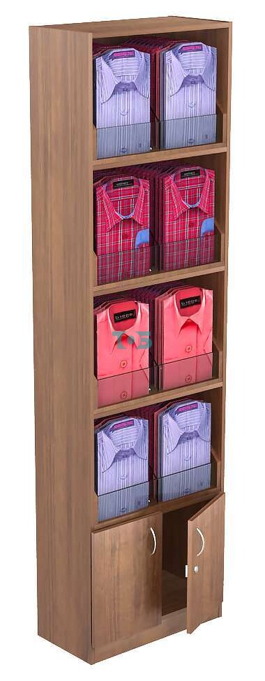 Отличия модели выставочного стеллажа со стеклянными разделителями для продажи рубашек СДПР-1-410 с дверками 410 мм: