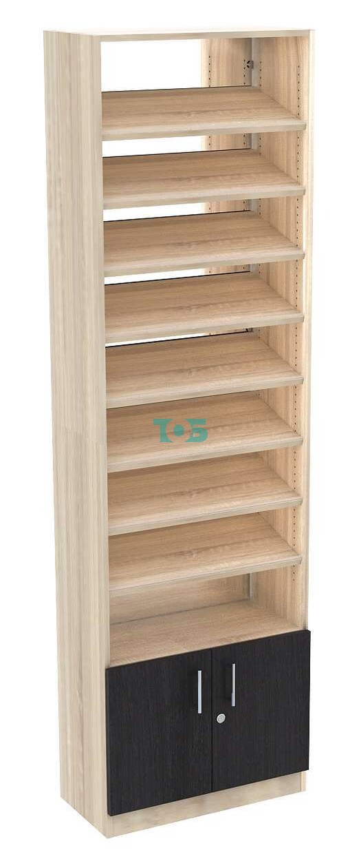 Отличия модели стеллажа из ДСП с 8-ю наклонными полками 300x600 мм серии TILT-8 №5-2 (З/C - ЗЕРКАЛО):