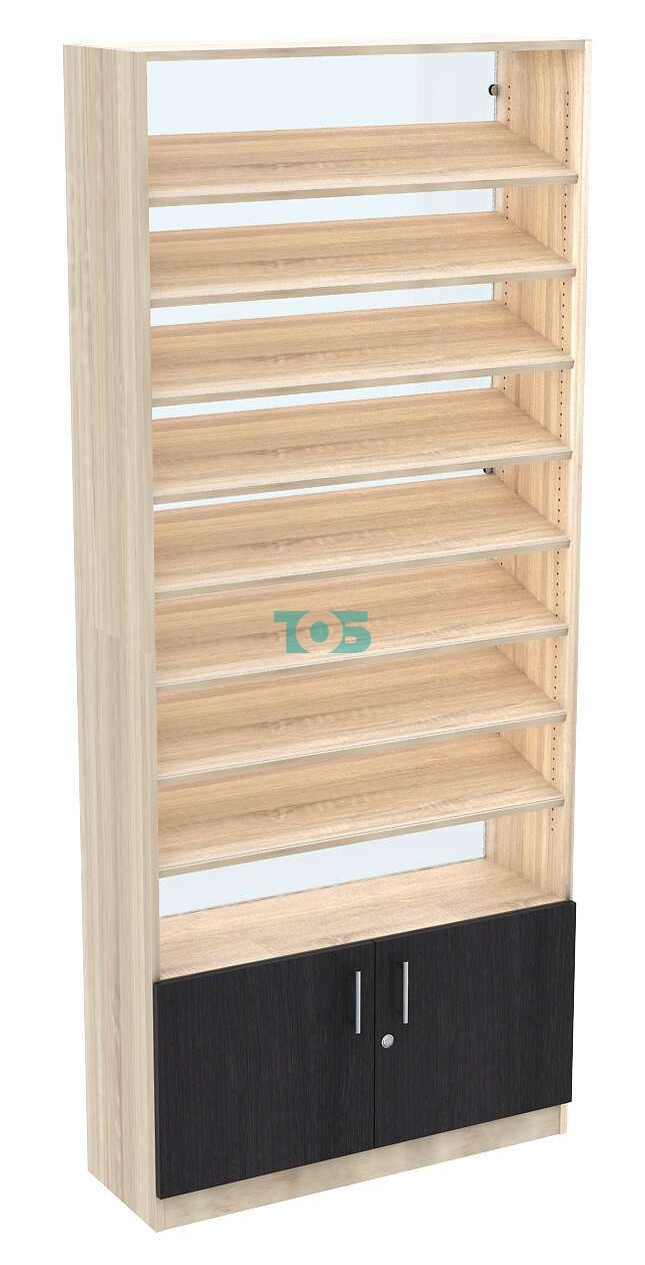 Отличия модели стеллажа из ДСП с 8-ю наклонными полками 300x900 мм серии TILT-8 №12-1 (З/C - СТЕКЛО):