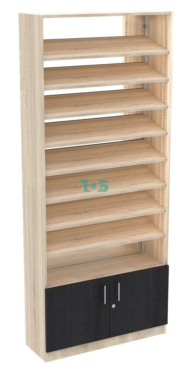 Отличия модели стеллажа из ДСП с 8-ю наклонными полками 300x900 мм серии TILT-8 №12-2 (З/C - ЗЕРКАЛО):