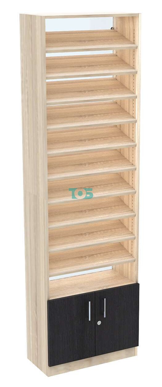 Отличия модели стеллажа из ДСП с 10-ю наклонными полками 300x600 мм серии TILT-10 №5-1 (З/C - СТЕКЛО):