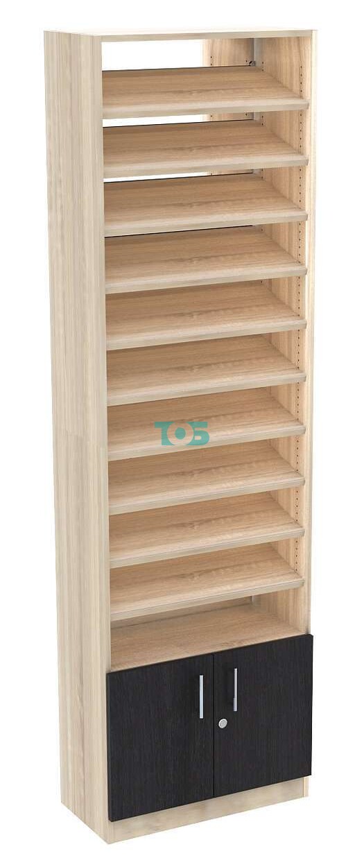 Отличия модели стеллажа из ДСП с 10-ю наклонными полками 300x600 мм серии TILT-10 №5-2 (З/C - ЗЕРКАЛО):