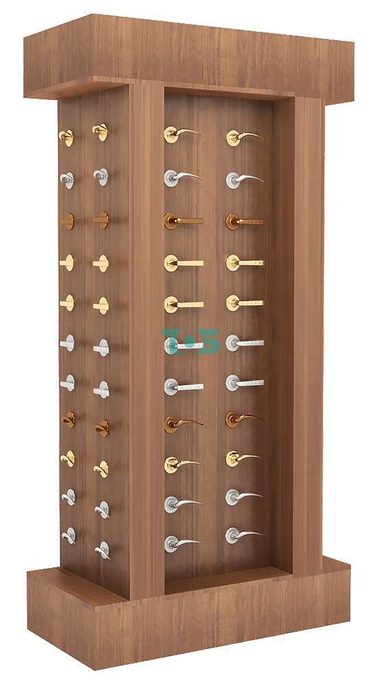 Комплект стендов для дверных ручек из ДСП №1 включает четыре стенда для дверных ручек, составленных в группу. Стенды имеют универсальную конструкцию. Ширина 500 мм позволяет размещать дверные ручки в два ряда. Отверстия под ручки сверлятся по месту.