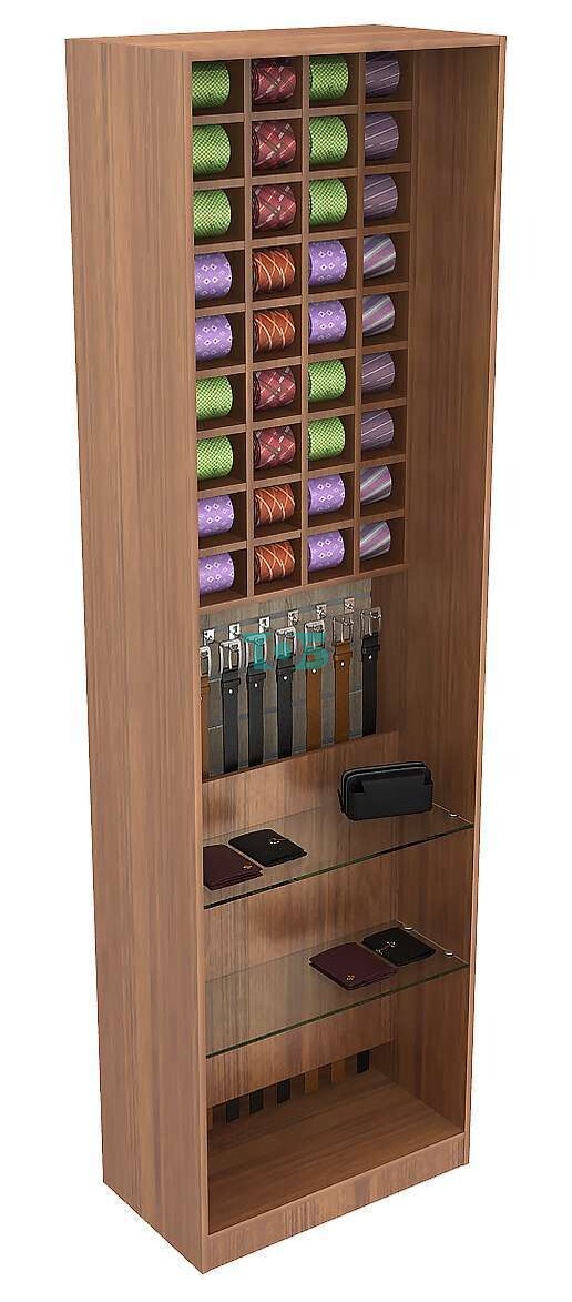 - в центральной части стеллажа закреплена экономпанель для вывески ремней (навесные элементы (крючки) приобретаются отдельно;