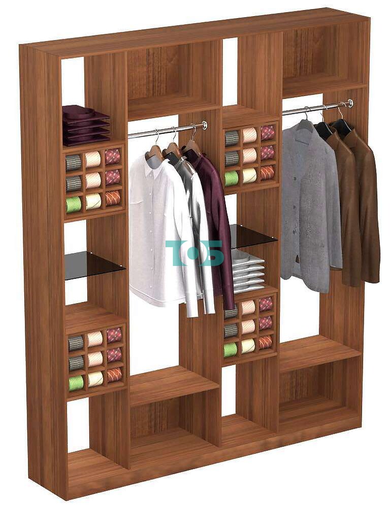 Отличия модели стенда с двумя тонированными полками для одежды и галстуков №8-2: