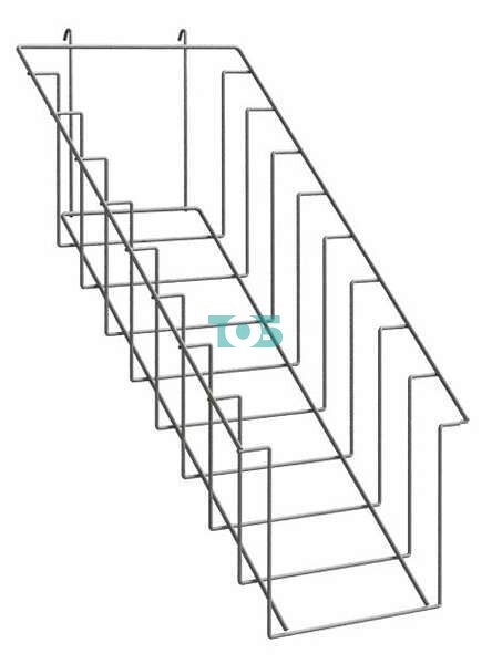 Полка 9 ячеек для рубашек крепится к сеткам, сетчатым модулям, стендам и стойкам с помощью специальных крючков и предназначена для представления упаковок с рубашками и других изделий аналогичного формата.