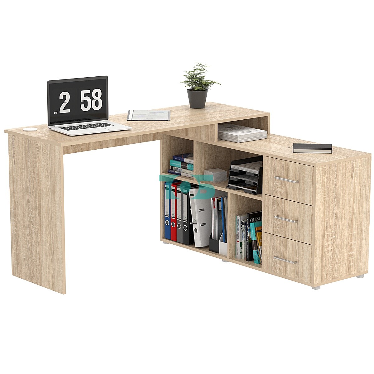 • Г-образная форма стола: помогает эффективно использовать угловое пространство и идеально вписывается в любое интерьер вашего рабочего кабинета.