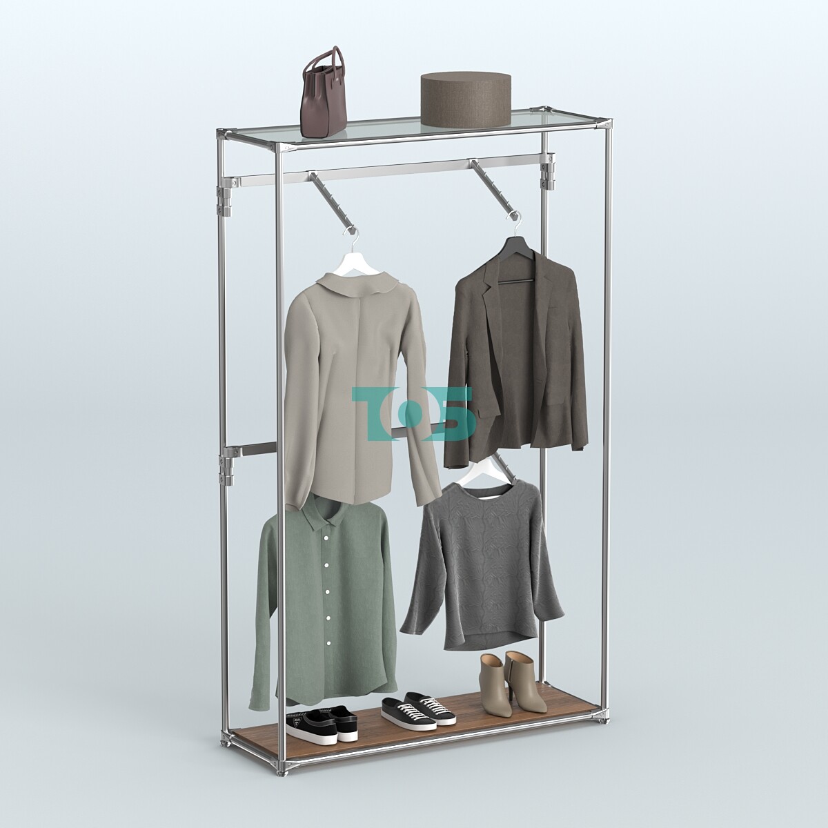 Отличия модели торговой системы ХРОМ без ДСП 1200 мм с поручнями №3: