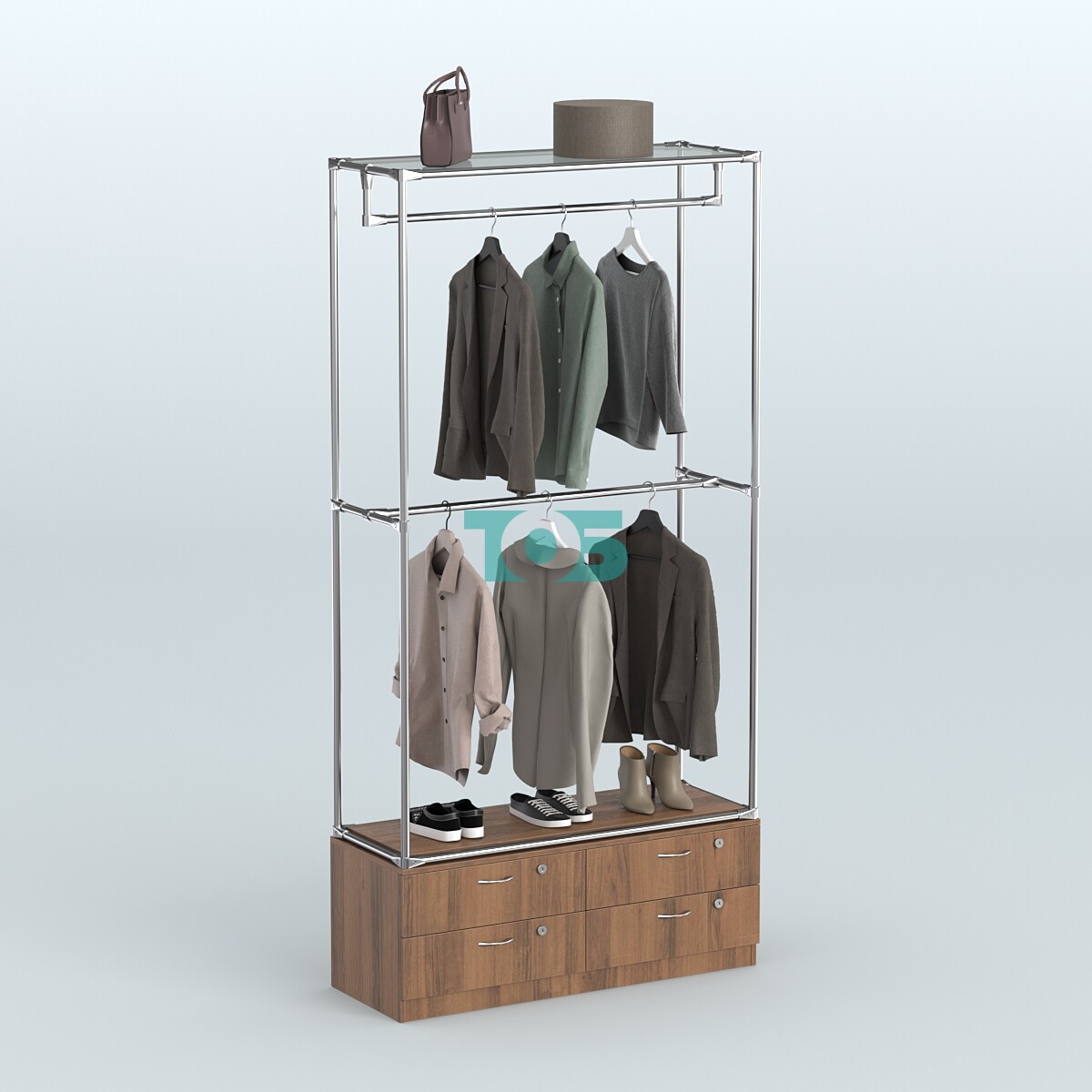 Поручни: два продольных поручня предназначены для размещения одежды, что делает систему многофункциональной и удобной в использовании.