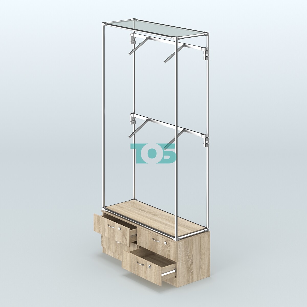 Торговая система ХРОМ без ДСП 1200 мм №3-2 с тумбой Т-14 и поручнями