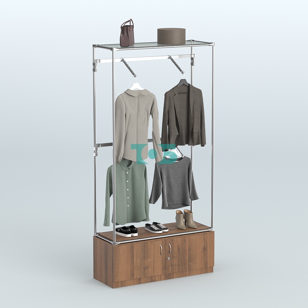 Торговая система ХРОМ без ДСП 1200 мм №3-4 с тумбой Т-21 и поручнями