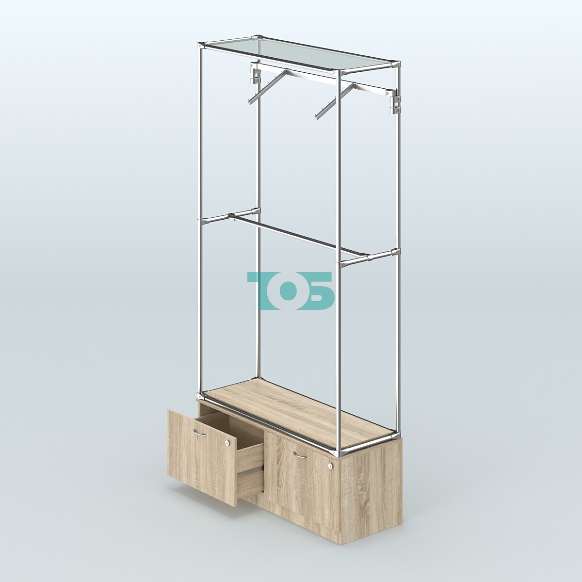 Торговая система ХРОМ без ДСП 1200 мм №4-3 с тумбой Т-15 и поручнями