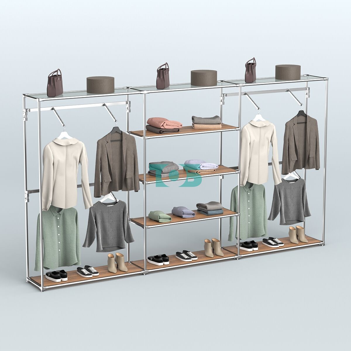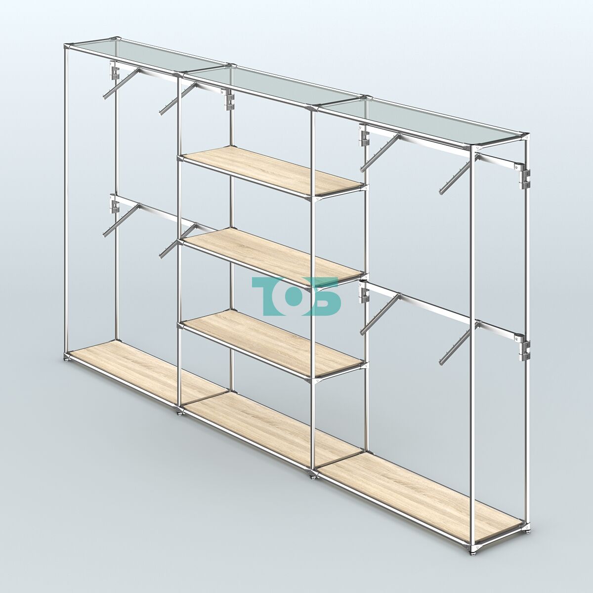 Отличия модели торговой системы ХРОМ без ДСП 3600 мм с полками ДСП и поручнями №5: