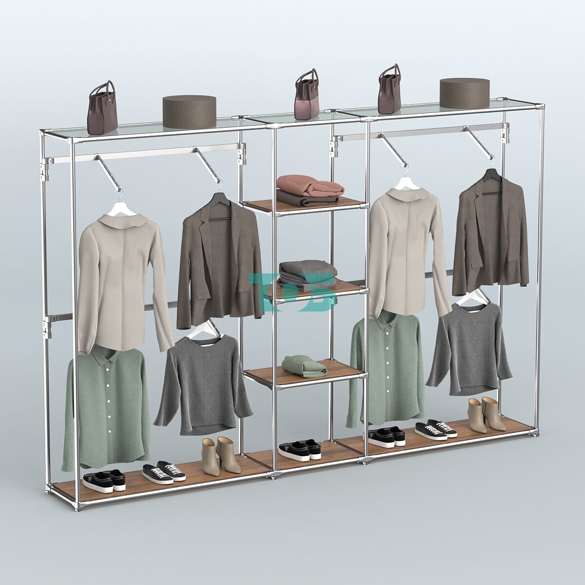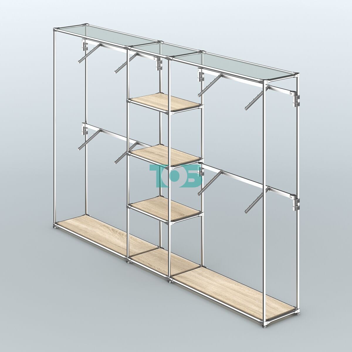 Отличия модели торговой системы ХРОМ без ДСП 3030 мм с полками ДСП и поручнями №8: