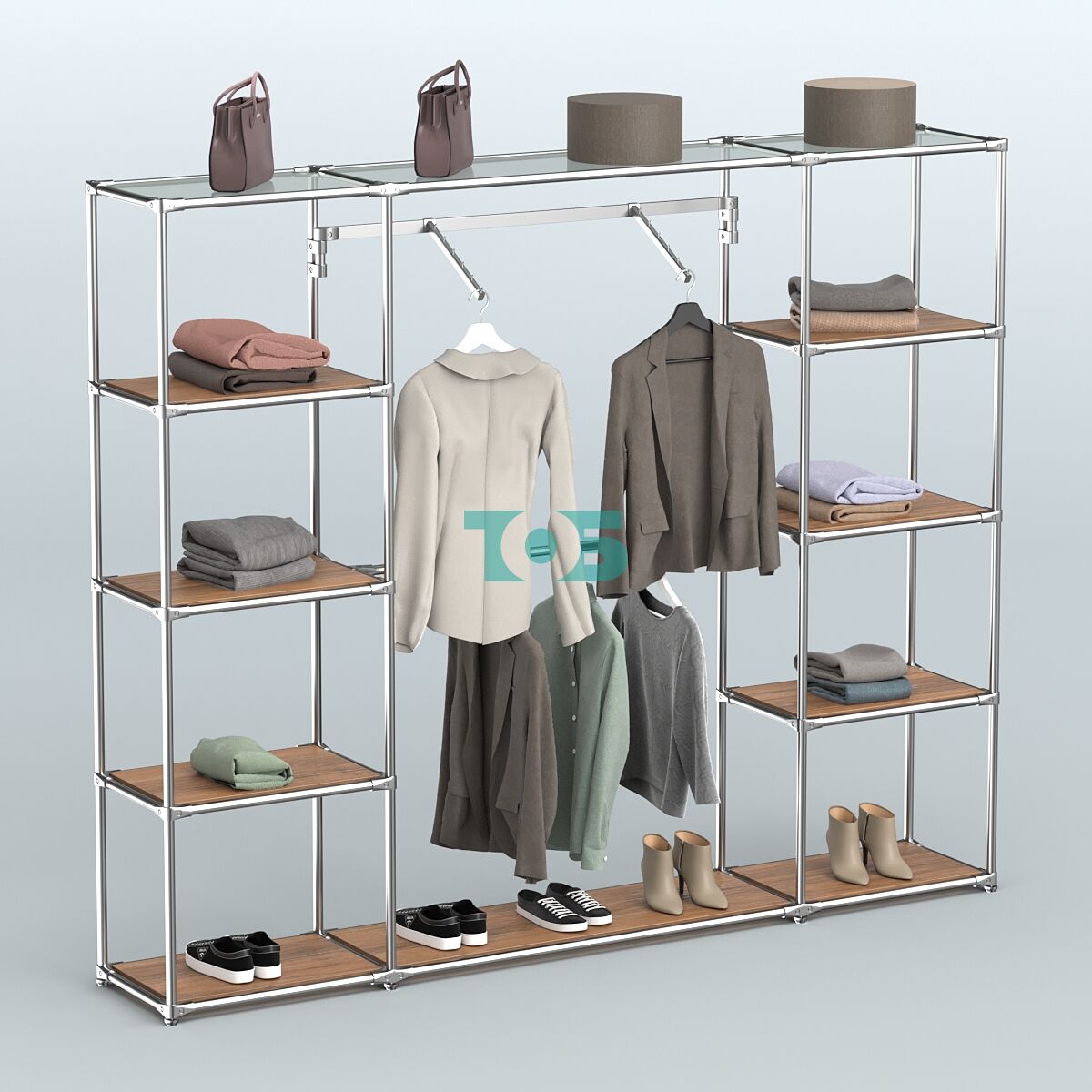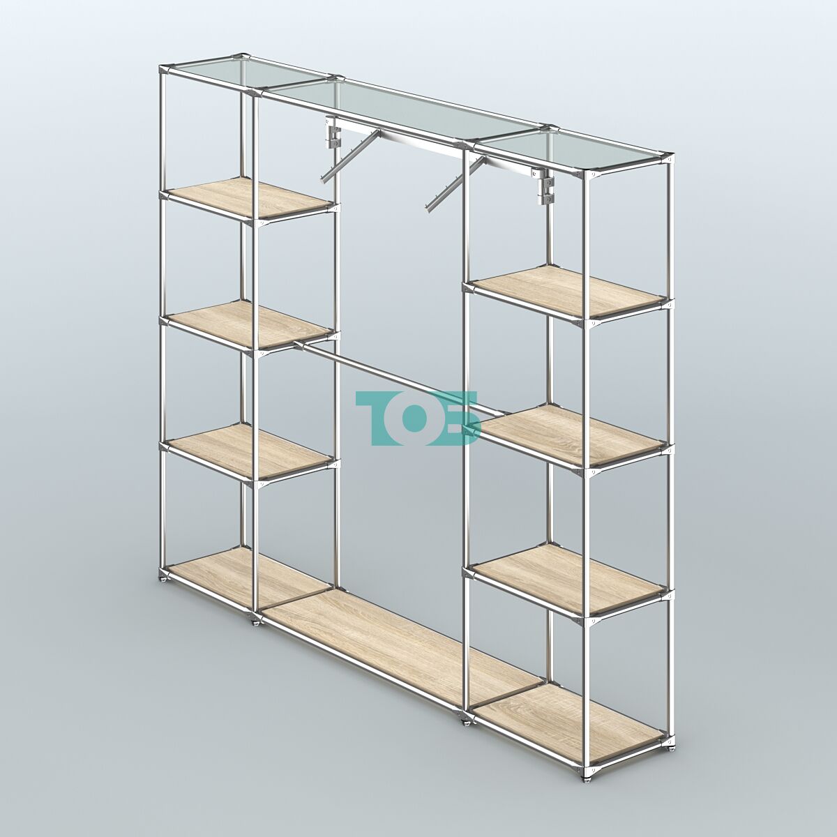 Отличия модели торговой системы ХРОМ без ДСП 2430 мм с полками ДСП и поручнями №11: