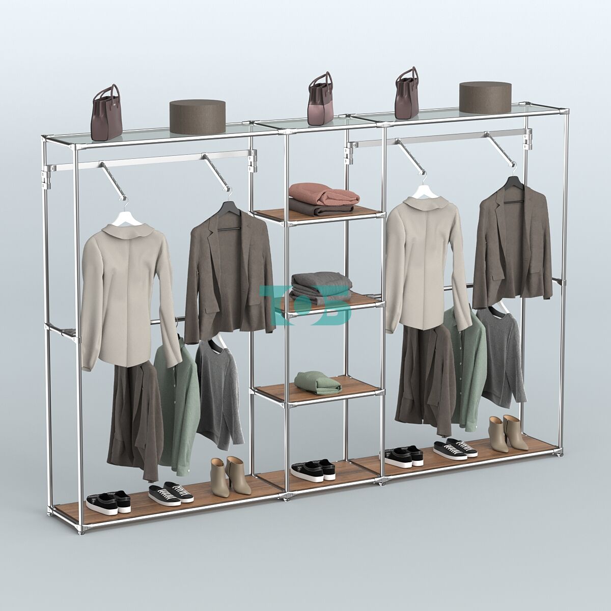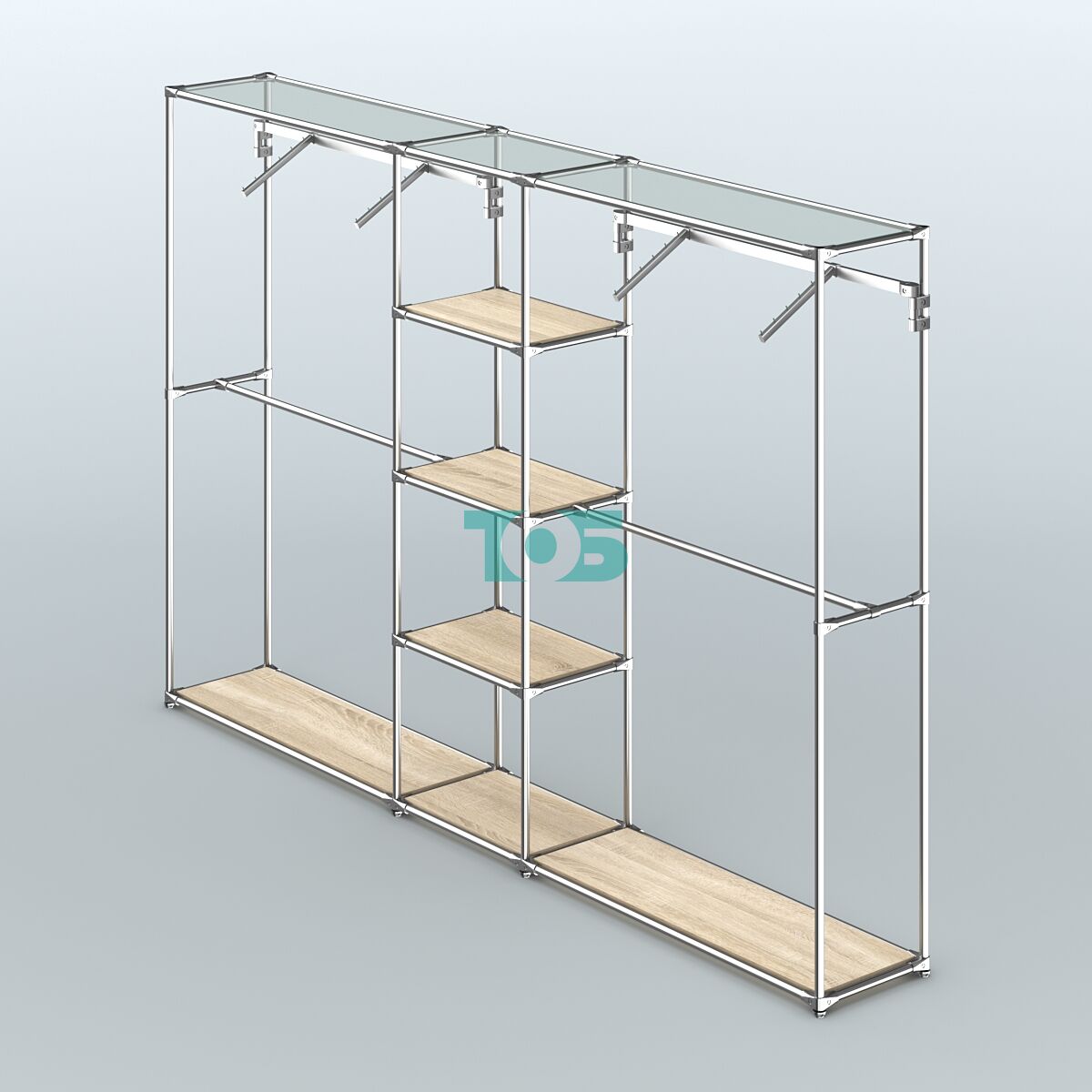 Отличия модели торговой системы ХРОМ без ДСП 3030 мм с полками ДСП и поручнями №12: