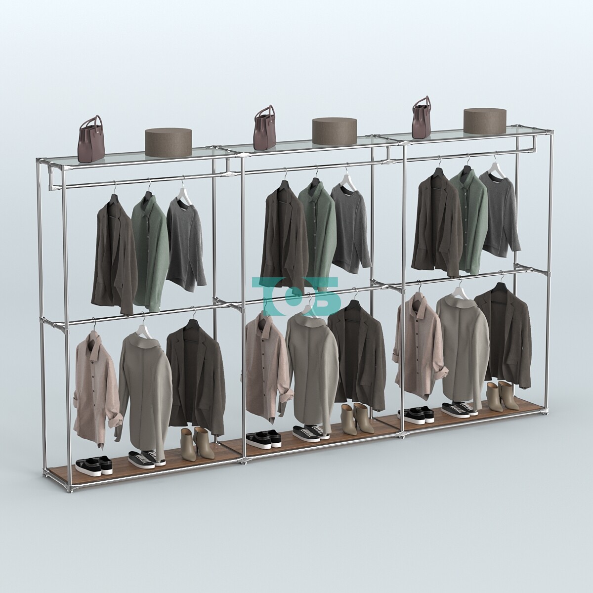 Поручни: шесть продольных поручней предназначены для размещения одежды или других предметов, обеспечивая удобство и порядок.