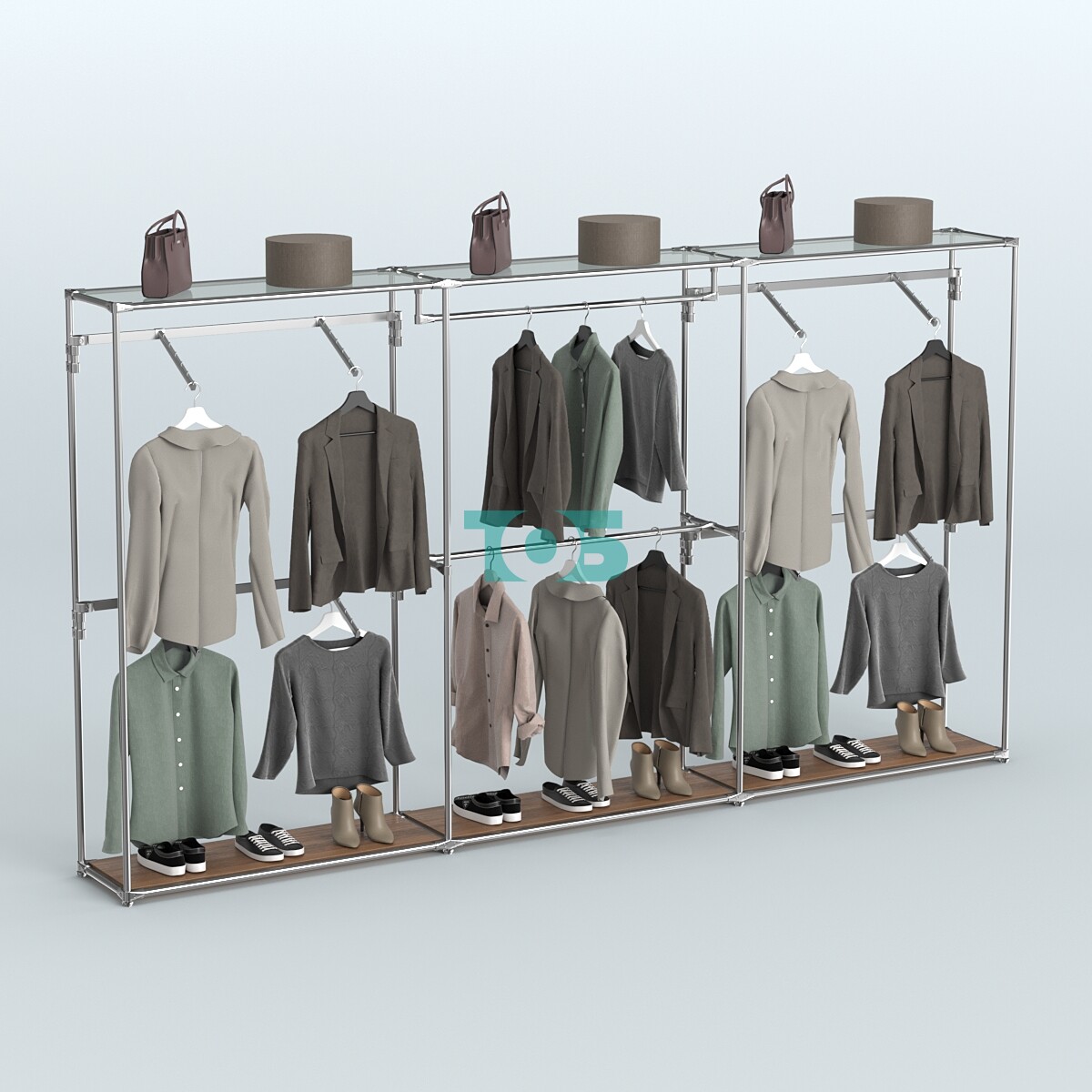 Задняя стенка: отсутствует, что способствует визуальному расширению пространства и облегчает доступ к системе с разных сторон.