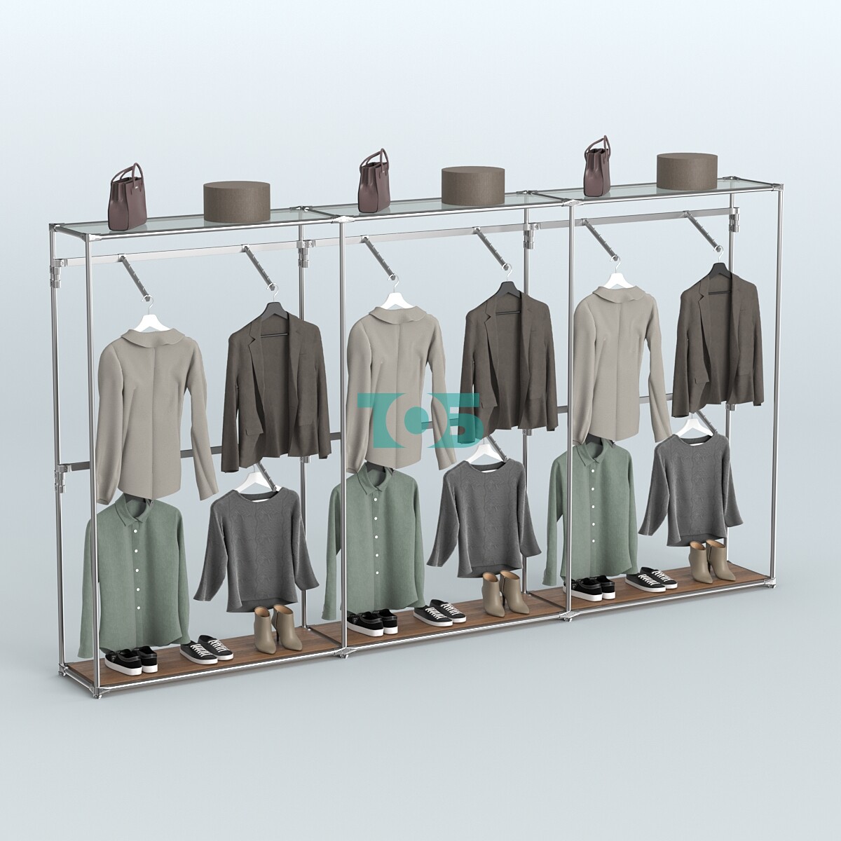 Поручни: шесть пристенных поручней для одежды, обеспечивающих удобство и порядок.