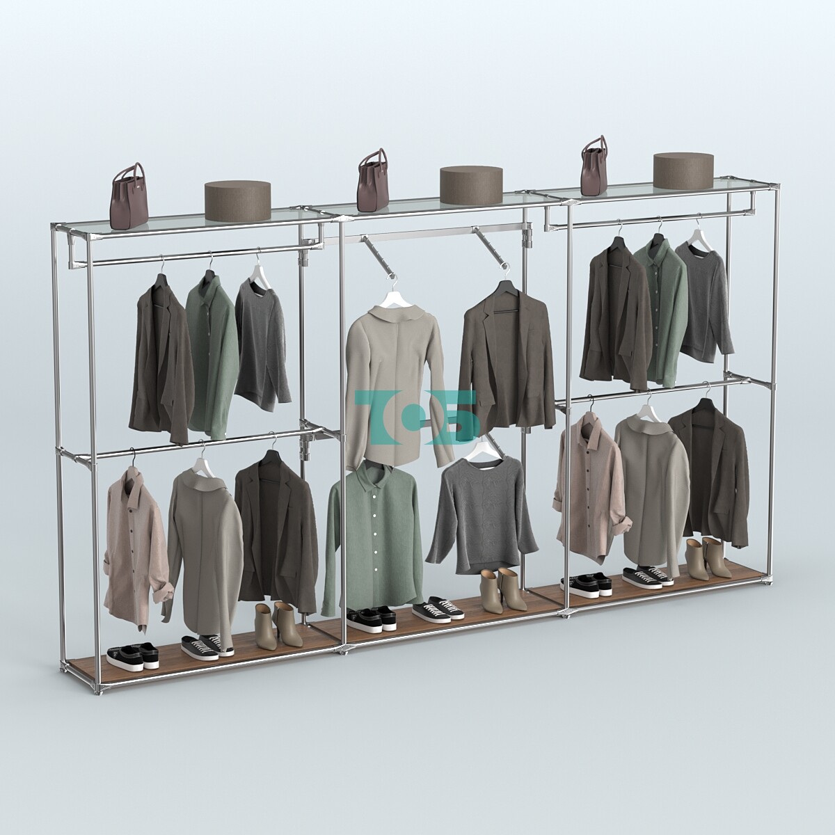 Задняя стенка: отсутствует, что способствует визуальному расширению пространства и облегчает доступ к системе с разных сторон.