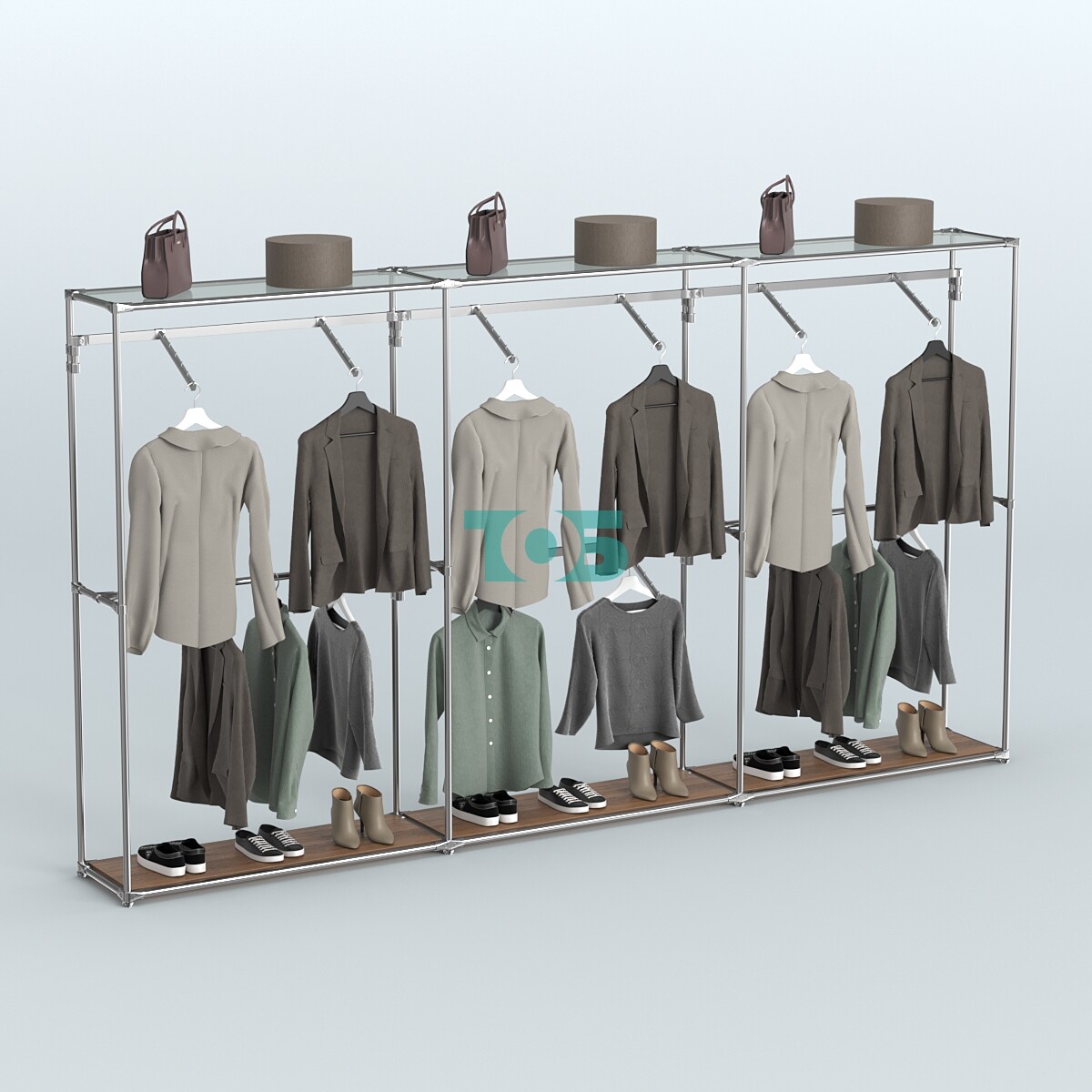 Задняя стенка: отсутствует, что способствует визуальному расширению пространства и облегчает доступ к системе с разных сторон.