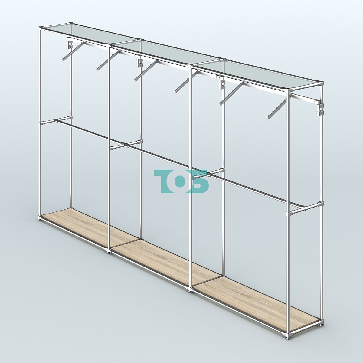 Торговая система ХРОМ без ДСП 3600 мм с поручнями №7