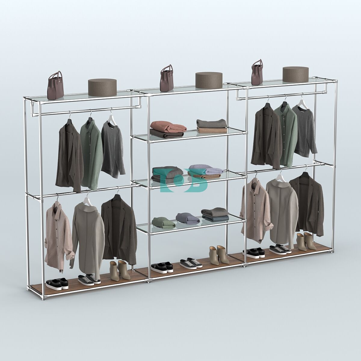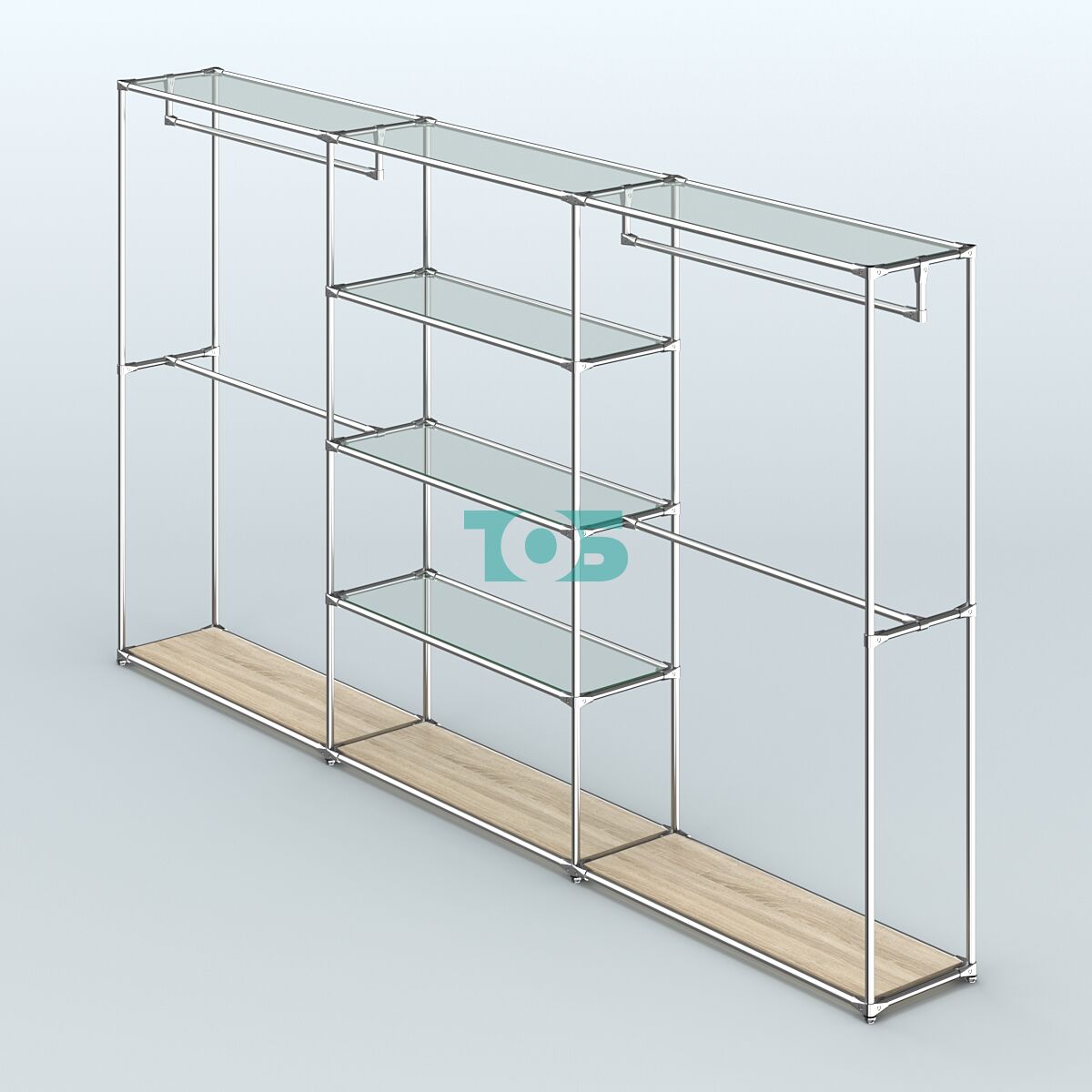 Отличия модели торговой системы ХРОМ без ДСП 3600 мм с прозрачными полками и поручнями №2: