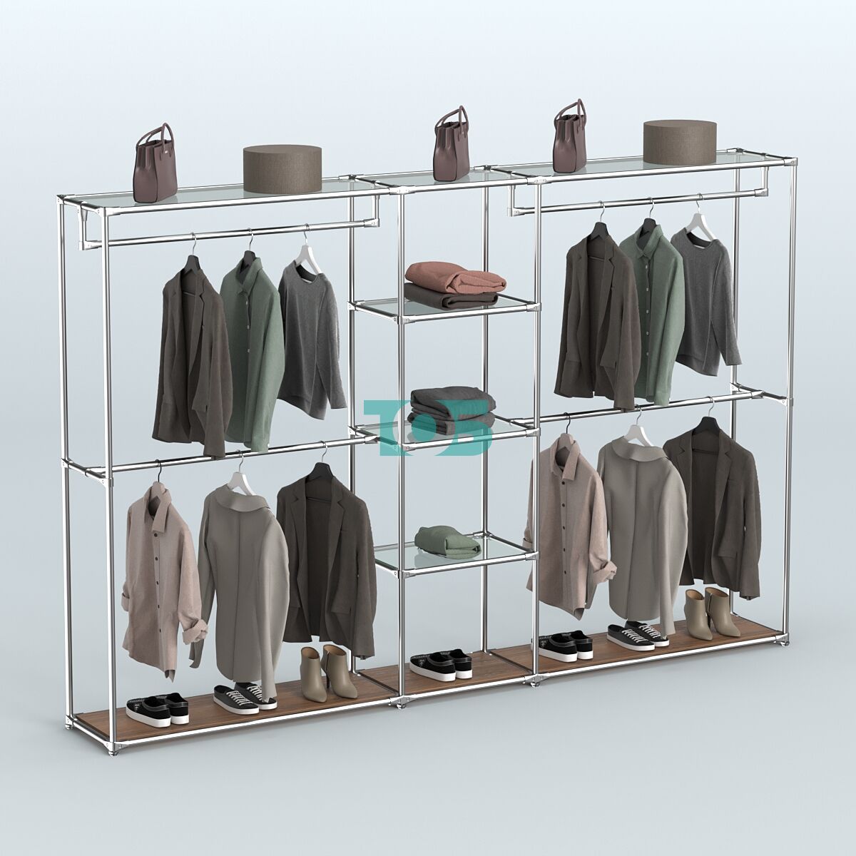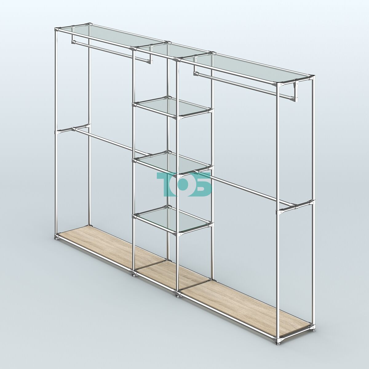 Отличия модели торговой системы ХРОМ без ДСП 3030 мм с прозрачными полками и поручнями №4: