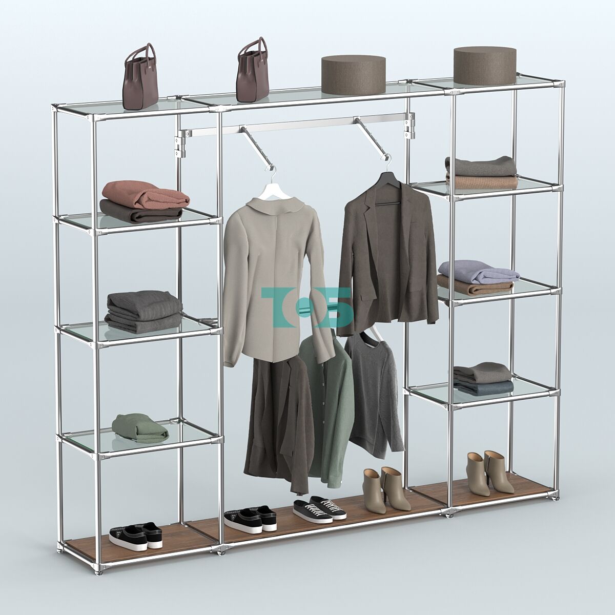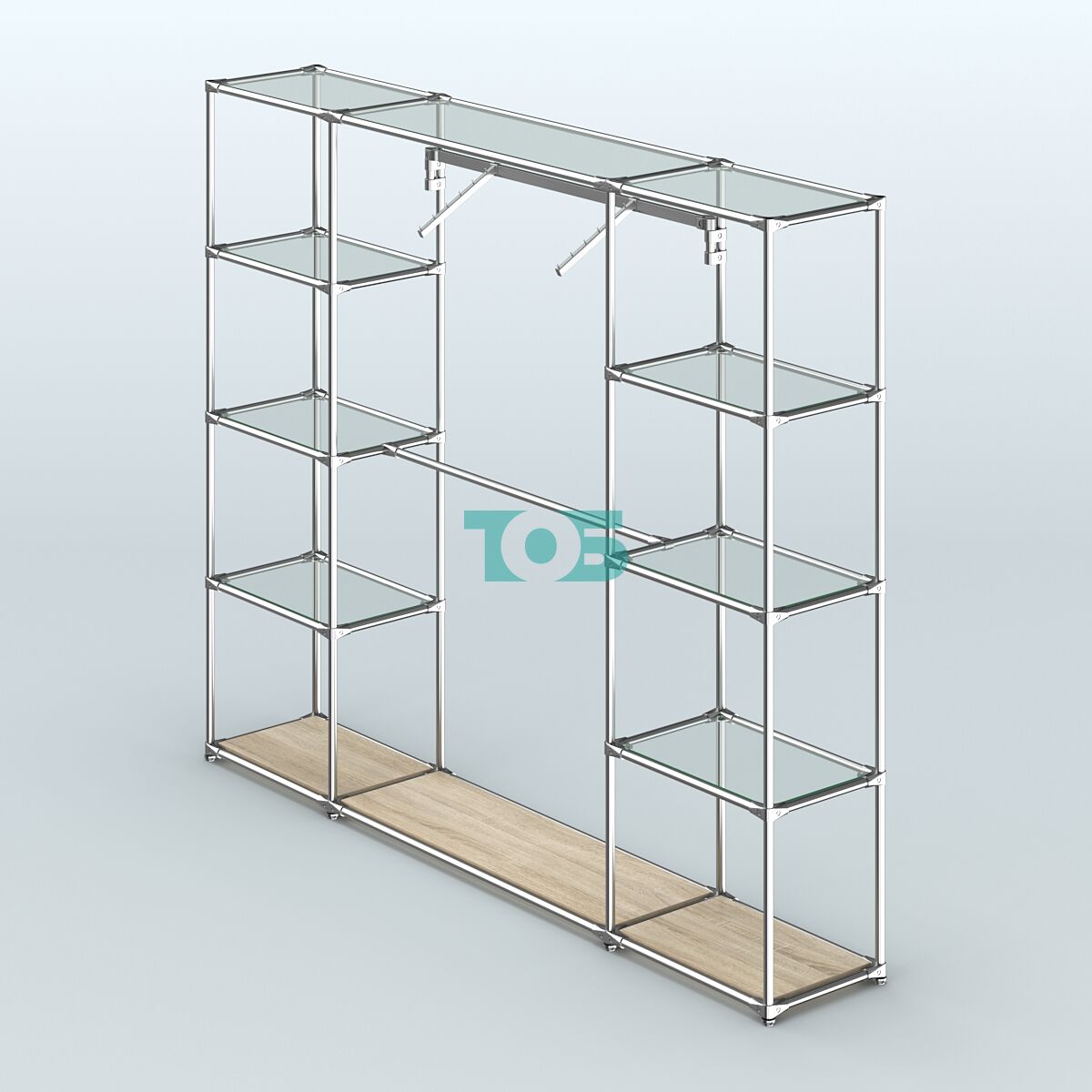 Отличия модели торговой системы ХРОМ без ДСП 2430 мм с прозрачными полками и поручнями №11: