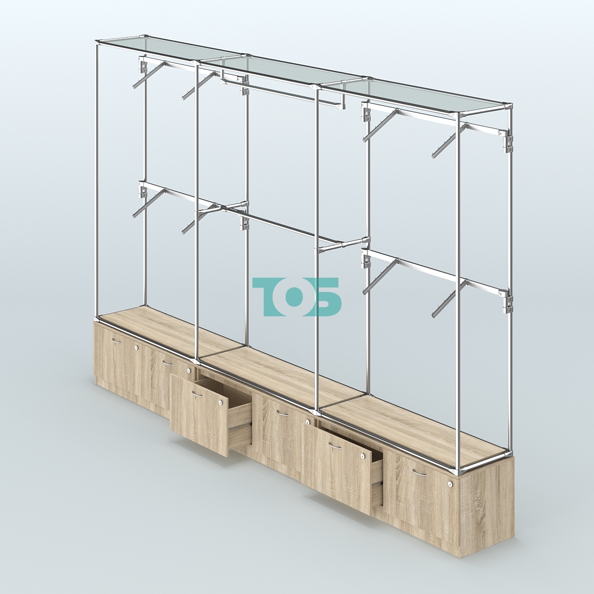 Торговая система ХРОМ без ДСП 3600 мм №2 с тумбами Т-15 и поручнями