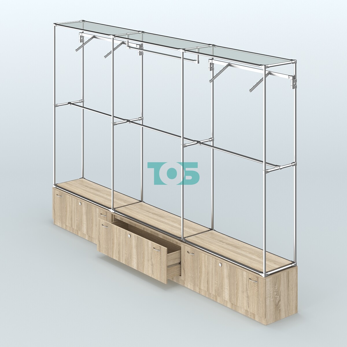 Торговая система ХРОМ без ДСП 3600 мм №3 с тумбами Т-11 и поручнями
