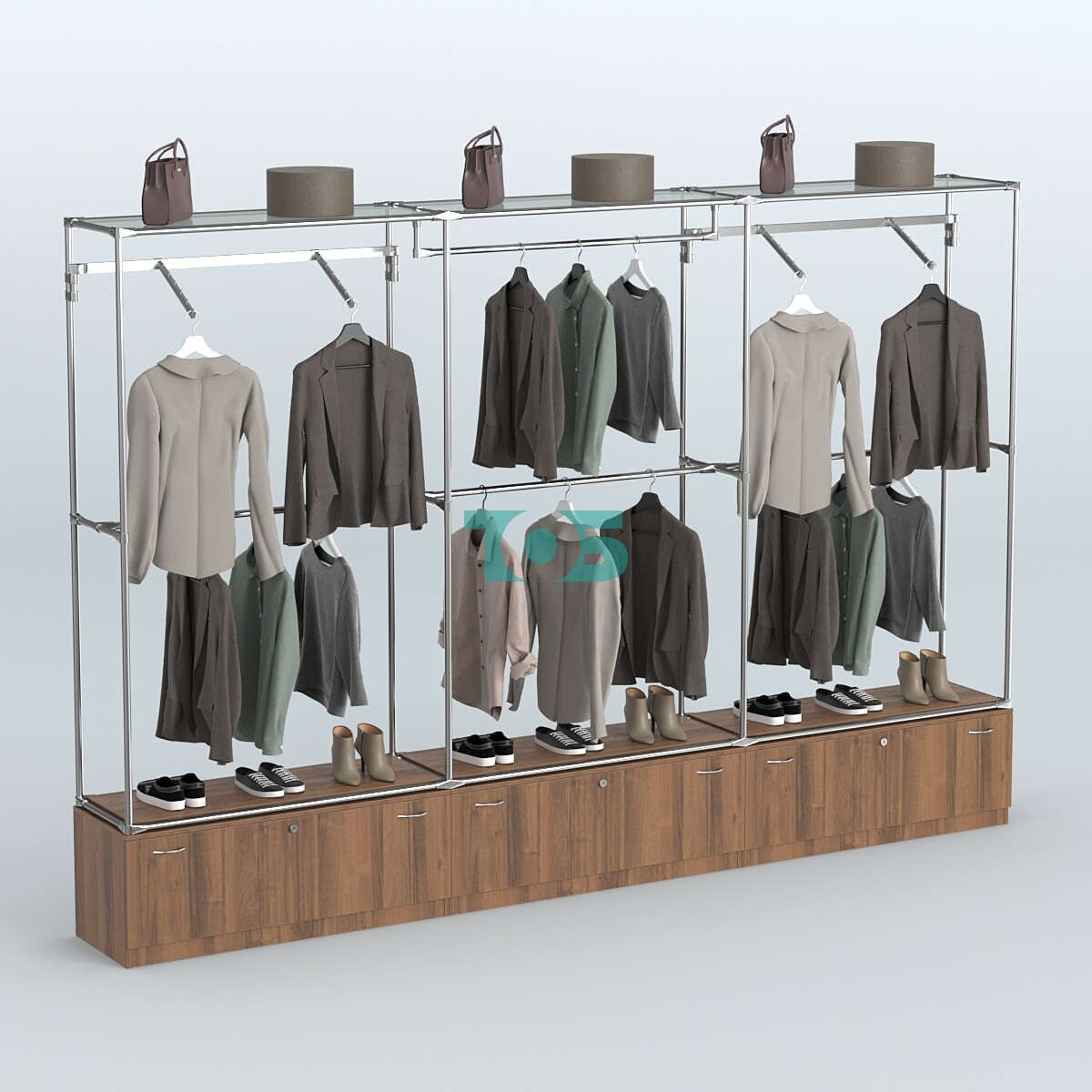 Поручни: система оснащена поручнями для одежды в трёх блоках: в левом и правом блоках по одному пристенному и одному продольному поручню, а в центральном блоке — два продольных поручня. Это обеспечивает удобство хранения вещей и их доступность.