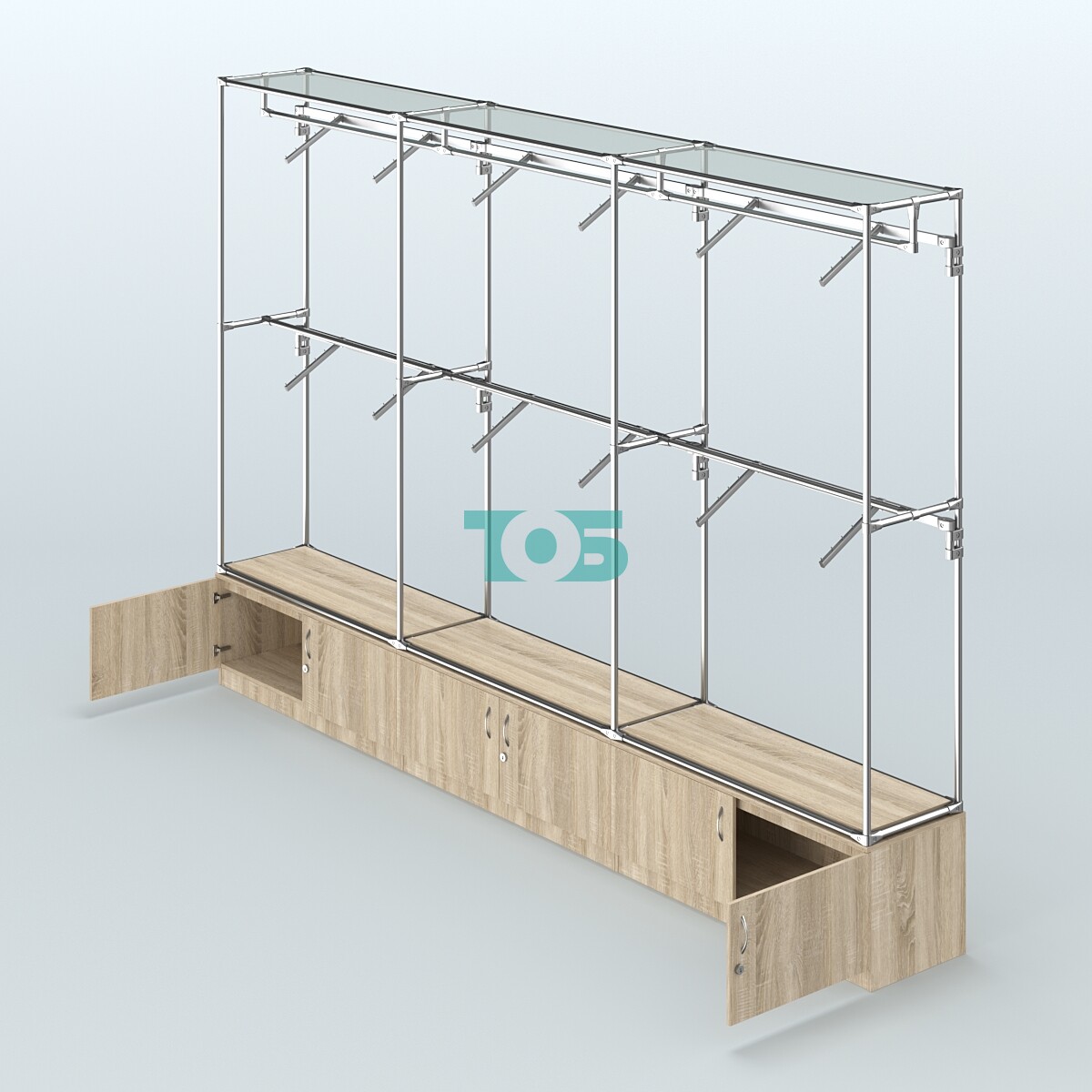 Торговая система ХРОМ без ДСП 3600 мм №5 с тумбами Т-21 и поручнями