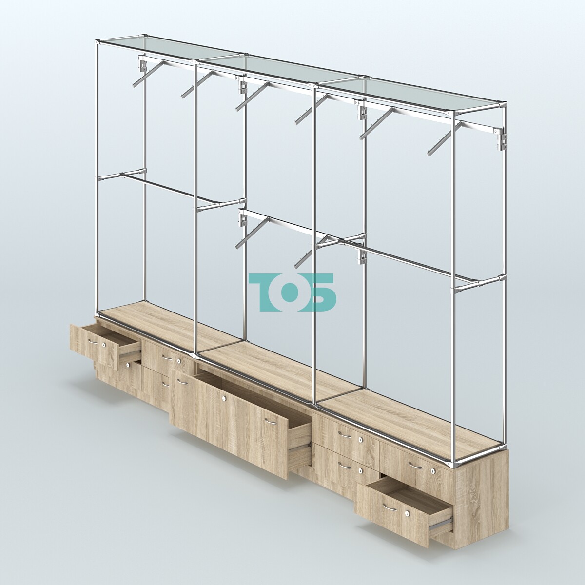 Торговая система ХРОМ без ДСП 3600 мм №6 с тумбами Т-11, Т-14 и поручнями