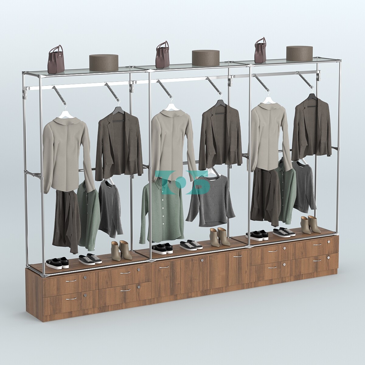 Поручни: система оснащена поручнями для одежды в трёх блоках: в левом и правом блоках по одному пристенному и одному продольному поручню, а в центральном блоке — два пристенных поручня. Это обеспечивает удобство хранения вещей и их доступность.