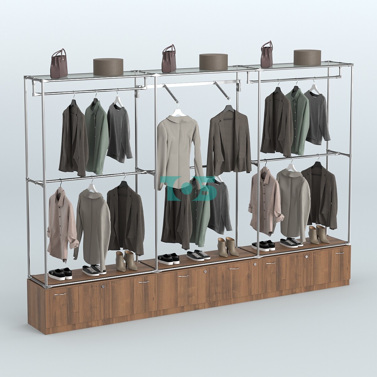 Торговая система ХРОМ без ДСП 3600 мм №8 с тумбами Т-11, Т-15 и поручнями представляет собой функциональное и стильное решение для организации пространства в торговых залах, офисах и других помещениях. Благодаря продуманной конструкции и качественным материалам система обеспечивает удобство использования и долговечность.