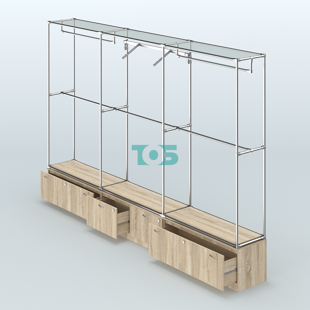 Торговая система ХРОМ без ДСП 3600 мм №8 с тумбами Т-11, Т-15 и поручнями