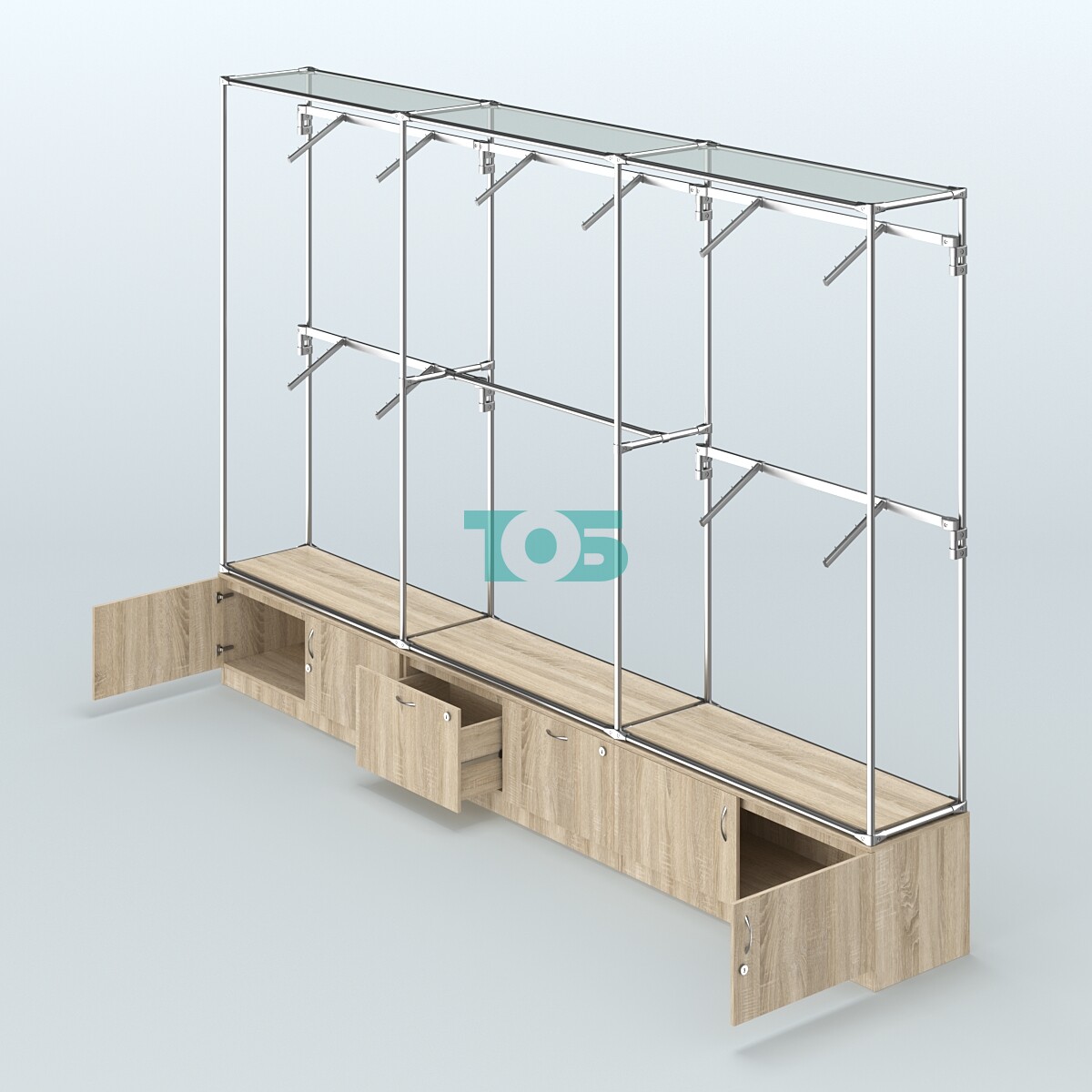 Торговая система ХРОМ без ДСП 3600 мм №9 с тумбами Т-21, Т-15 и поручнями