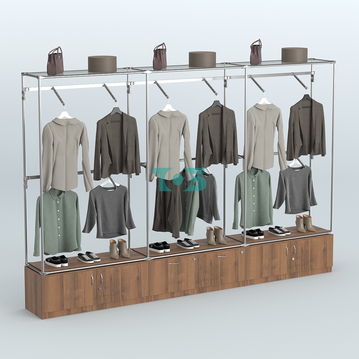 Поручни: система оснащена поручнями для одежды в трёх блоках: в левом и правом блоках по два пристенных поручня, а в центральном блоке — один пристенный и один продольный поручень. Это обеспечивает удобство хранения вещей и их доступность.