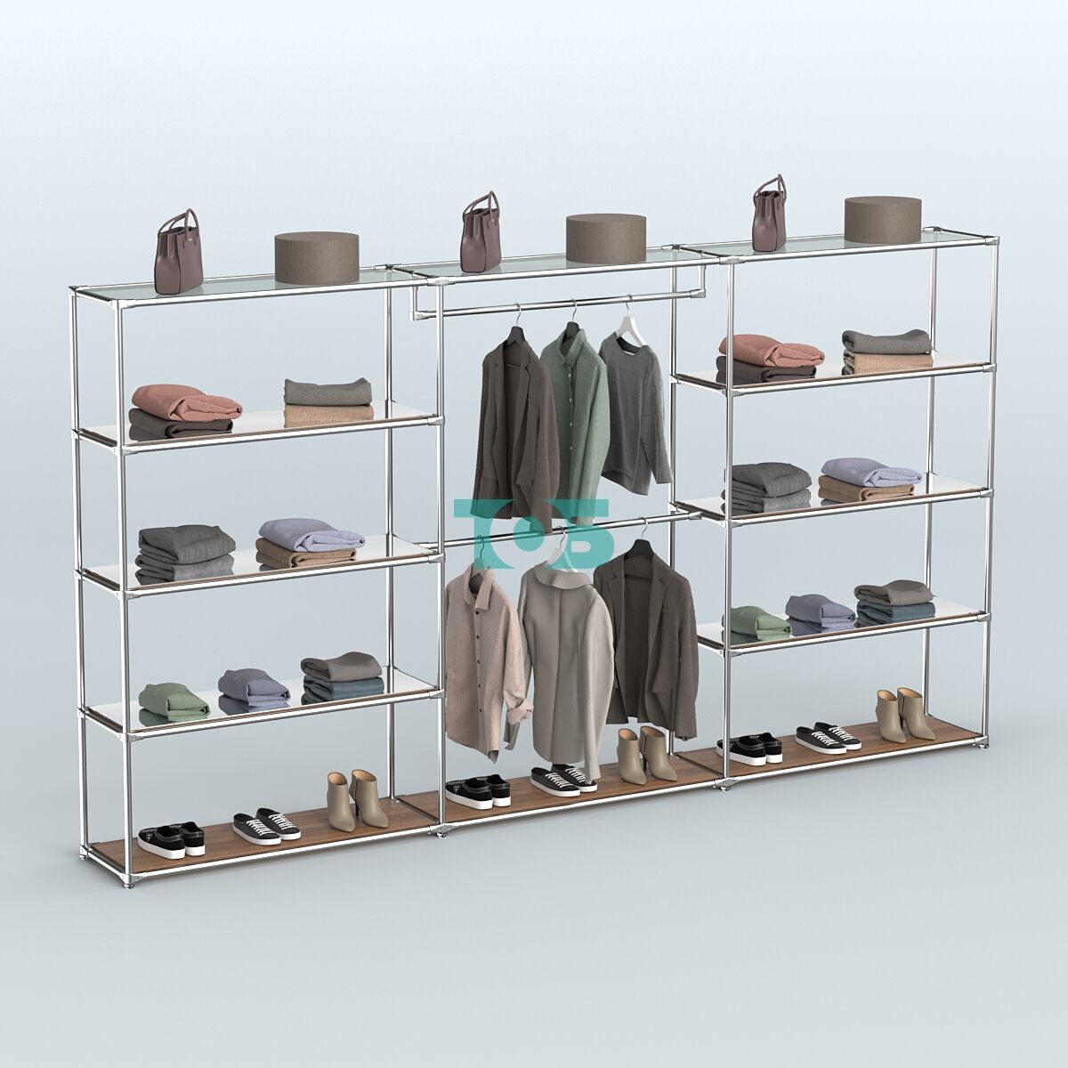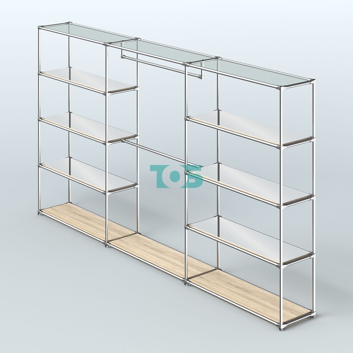 Отличия модели торговой системы ХРОМ без ДСП 3600 мм с зеркальными полками и поручнями №1: