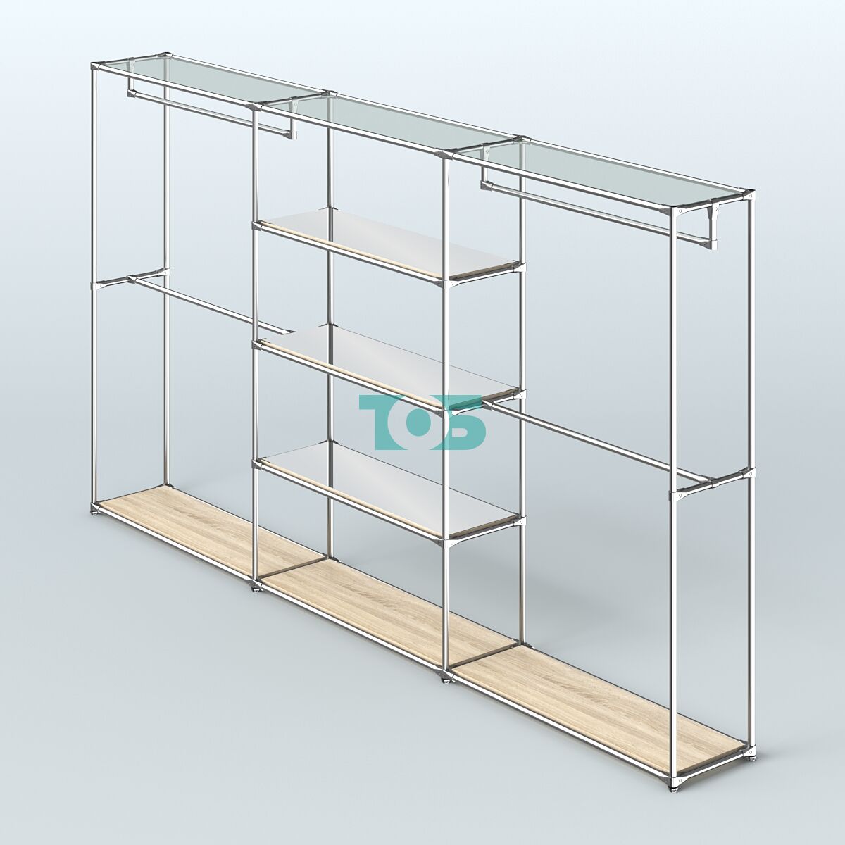 Отличия модели торговой системы ХРОМ без ДСП 3600 мм с зеркальными полками и поручнями №2: