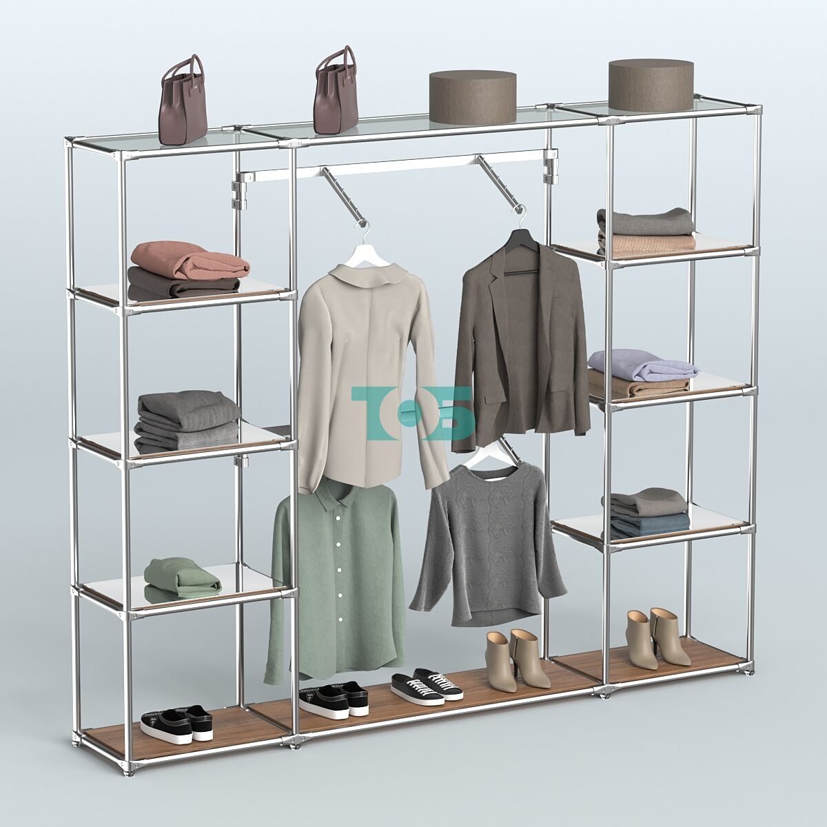 Отличия модели торговой системы ХРОМ без ДСП 2430 мм с зеркальными полками и поручнями №7: