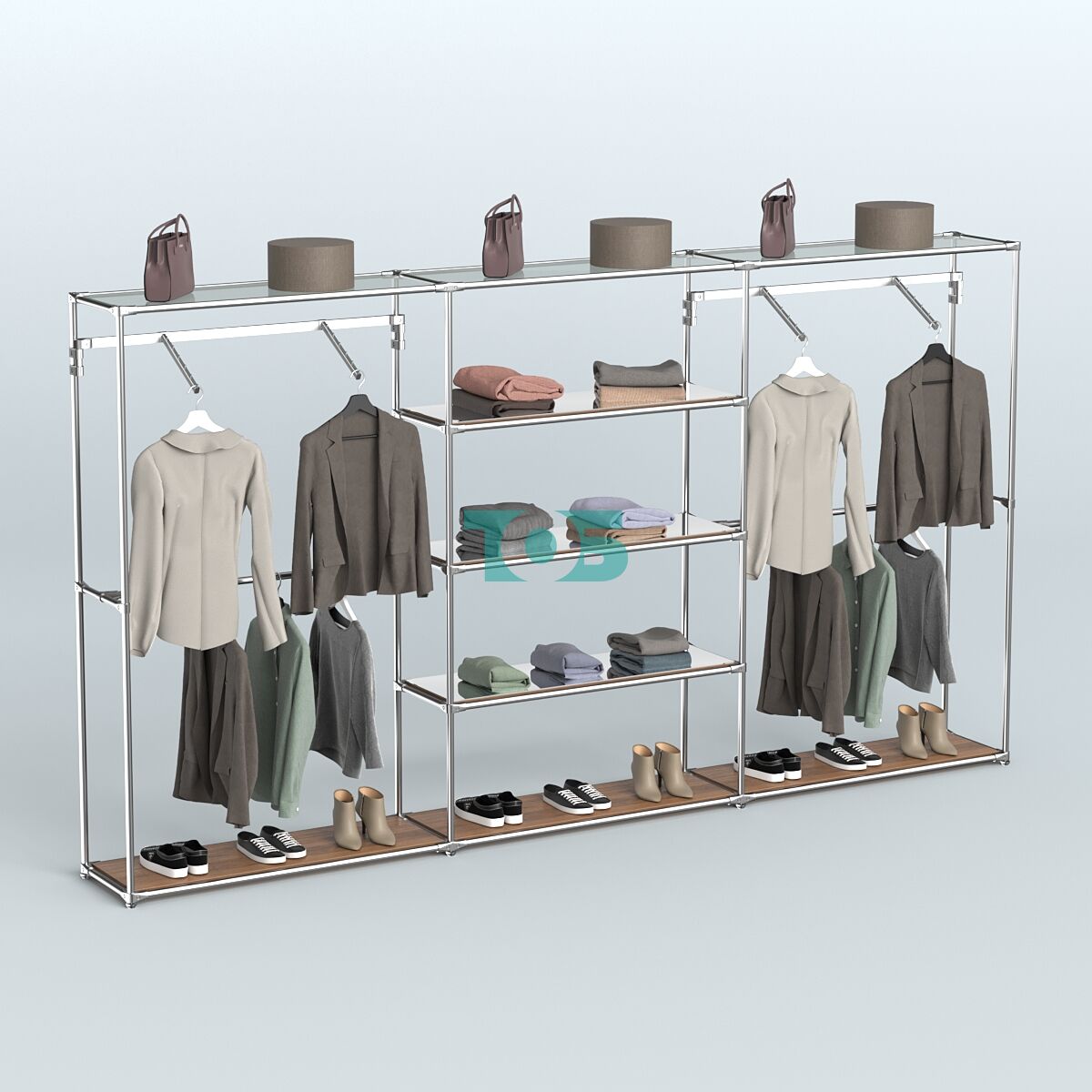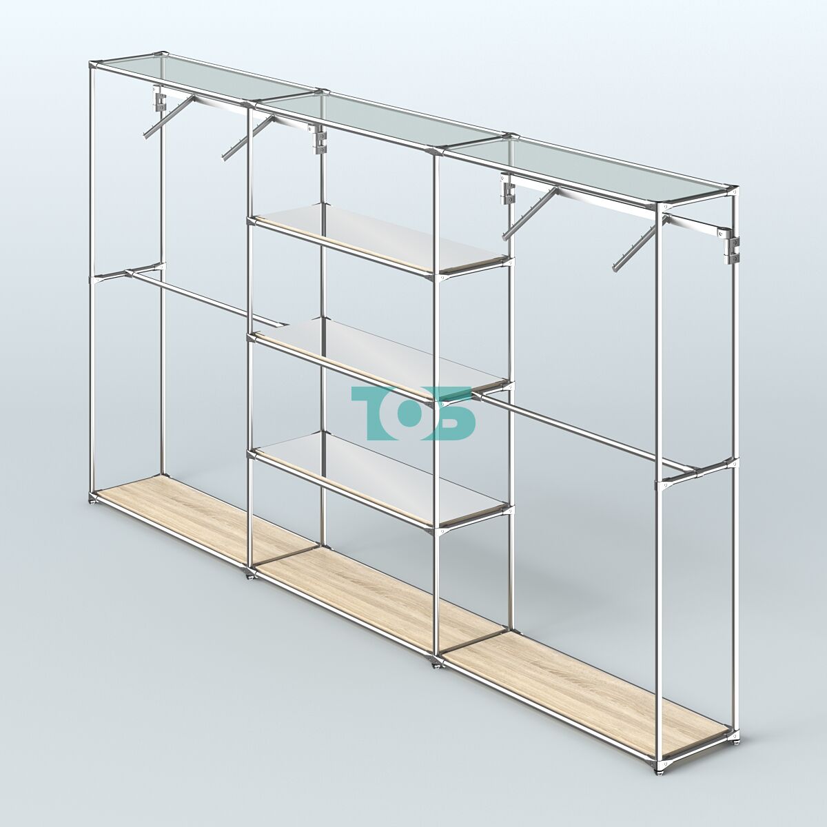 Отличия модели торговой системы ХРОМ без ДСП 3600 мм с зеркальными полками и поручнями №10: