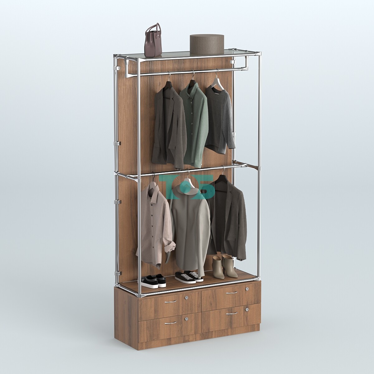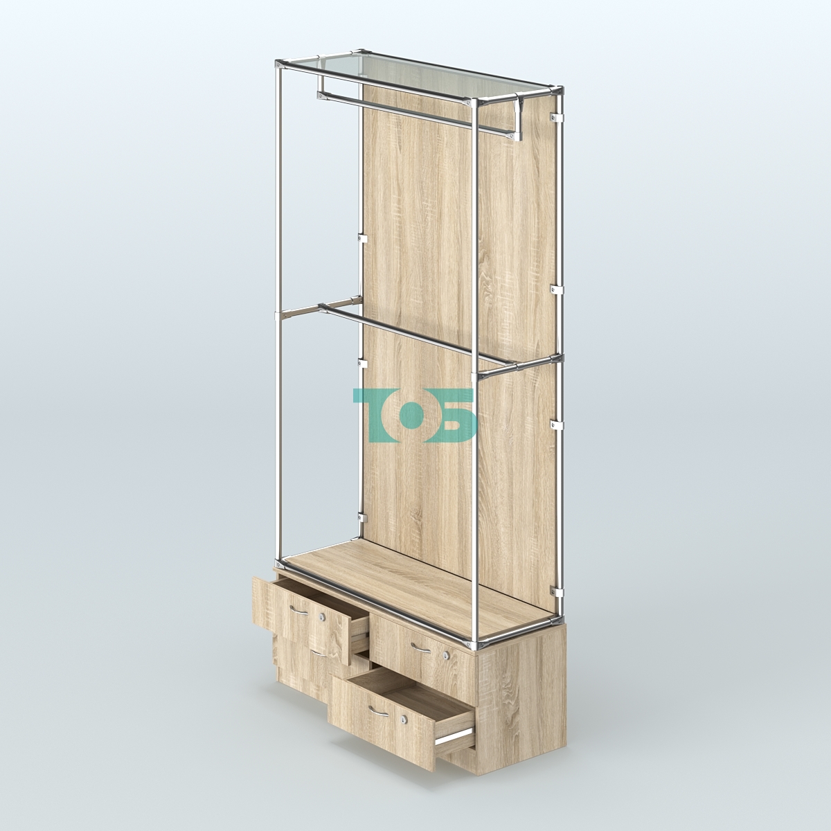 Поручни: два продольных поручня для одежды, которые обеспечивают удобство и безопасность при использовании системы.